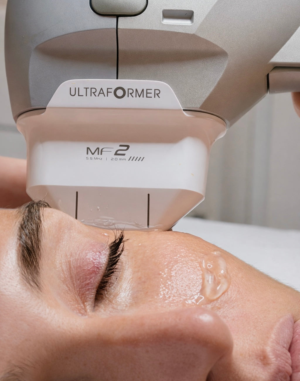 Necks, eyelids, chins, jawlines, brows and areas of the body that are wrinkling or sagging, such as armpits, stomachs, thighs, will lift under the ultrasound technology of the ULTRAFORMER.